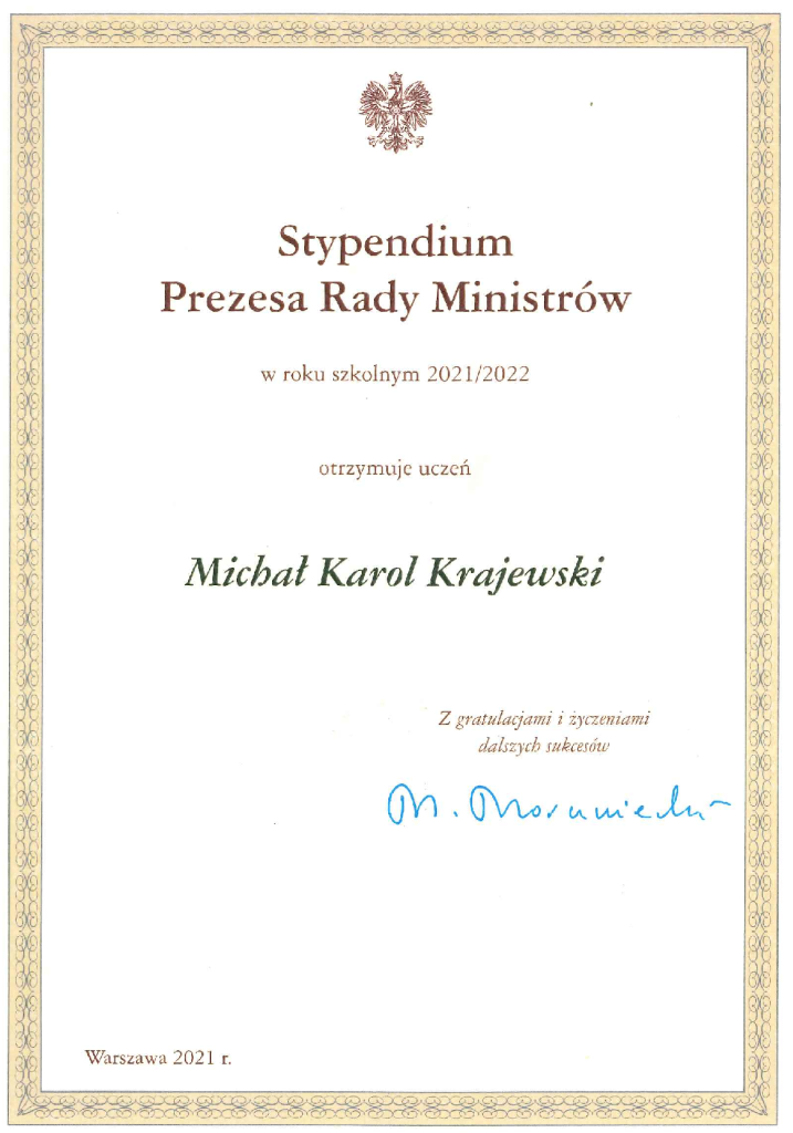 W tym roku szkolnym Stypendium Prezesa Rady Ministrów mogło być przyznane uczniowi czteroletniego liceum ogólnokształcącego oraz uczniowi klasy dotychczasowego trzyletniego liceum ogólnokształcącego (absolwentowi dotychczasowego gimnazjum).
