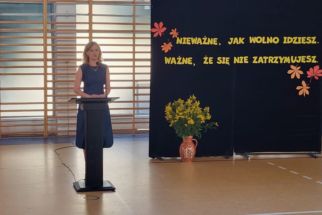 Powitaliśmy nowe koleżanki i nowych kolegów serdecznie, a pani dyrektor Anna Schmelter przyjęła od nich ślubowanie na sztandar szkoły. Życzymy powodzenia nie tylko im, ale wszystkim uczniom.