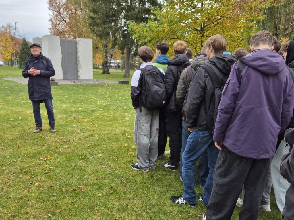 Podczas spotkania Pan Jan Wyrowiński opowiadał o: historii Zbrodni Pomorskiej 1939, genezie powstania Parku Pamięci, symbolice postumentów i miejsc pamięci znajdujących się na jego terenie.
