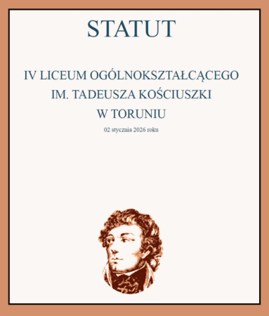 Dokumenty Strategia Rozwoju Edukacji Miasta Torunia2016-2023Statut IV LO w ToruniuStyczeń 2026Wydawanie duplikatów legitymacji i świadectw mLegitymacja mLegitymacjaRegulamin Samorządu UczniowskiegoRegulamin SUStandardy Ochrony MałoletnichOchrona Małoletnich Program Wychowawczo-ProfilaktycznyOchrona MałoletnichRegulamin boiska szkolnegoRegulamin Boiska SzkolnegoRegulamin Wycieczek SzkolnychRegulamin Boiska SzkolnegoRegulamin Korzystania z Systemu Kontroli Dostępu oraz Dostępu do Budynku Osób TrzecichRegulamin- kontrola dostępu - PobierzKlauzula informacyjna - kontrola dostępu - PobierzKlauzula informacyjna- monitoring wizyjny - Pobierz