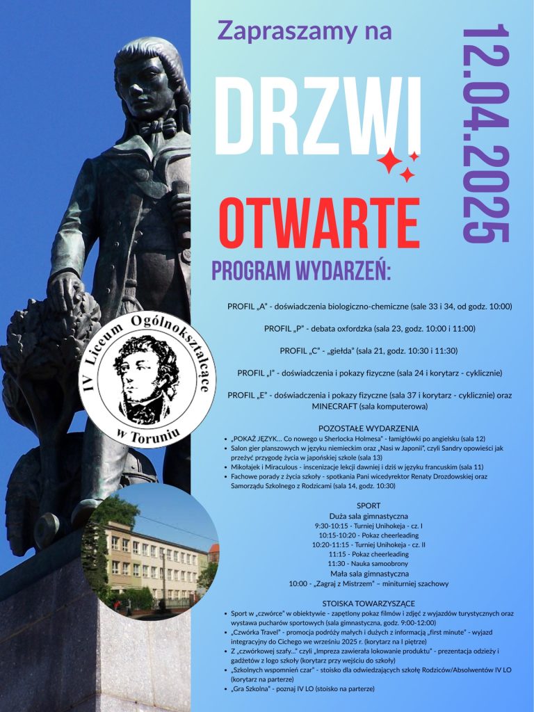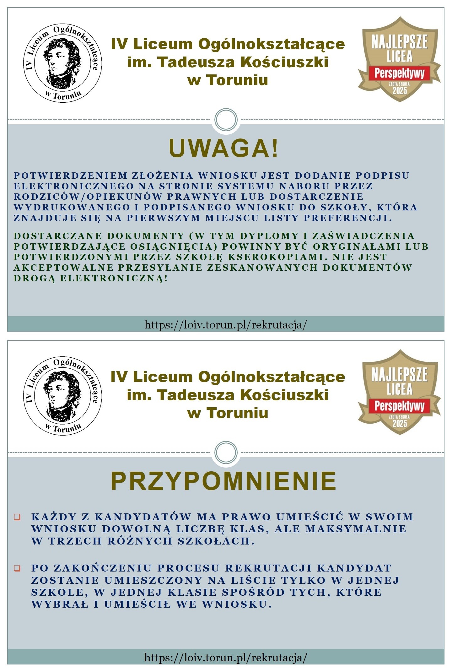 Brak ww. dokumentów (do piątku 18 lipca 2025 r., godz. 15:00) będzie oznaczał rezygnację z podjęcia nauki w IV LO!