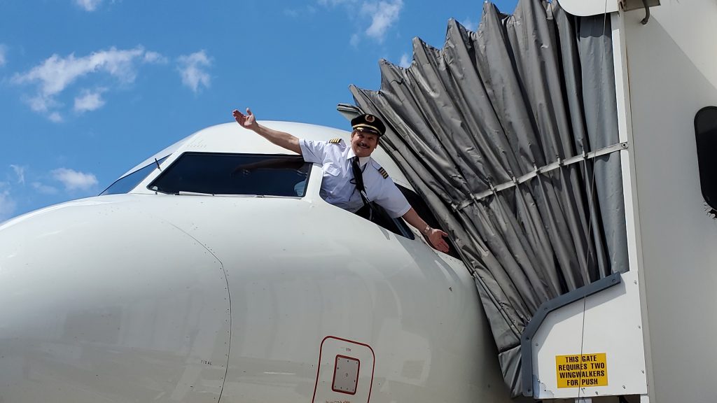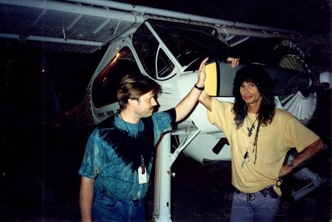 Od tego momentu (późne lata 80-te) pracowałem jako pilot zawodowy - firmy czarterowe, potem dwa lata latania dla grupy rockowej "Aerosmith" (Steven Taylor był dobrym przyjacielem - na zdjęciu pokazuję mu polską Wilgę na lotnisku w Phoenix), poprzez lokalne linie lotnicze, aż do pozycji kapitana w Delta Air Lines.